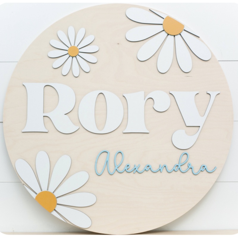 Darling daisies! This charming custom round desert sign is sure to complete the look you’re going for! You curate the look of your childs name with fonts and letter colors to match your artistic vision for your little ones room.