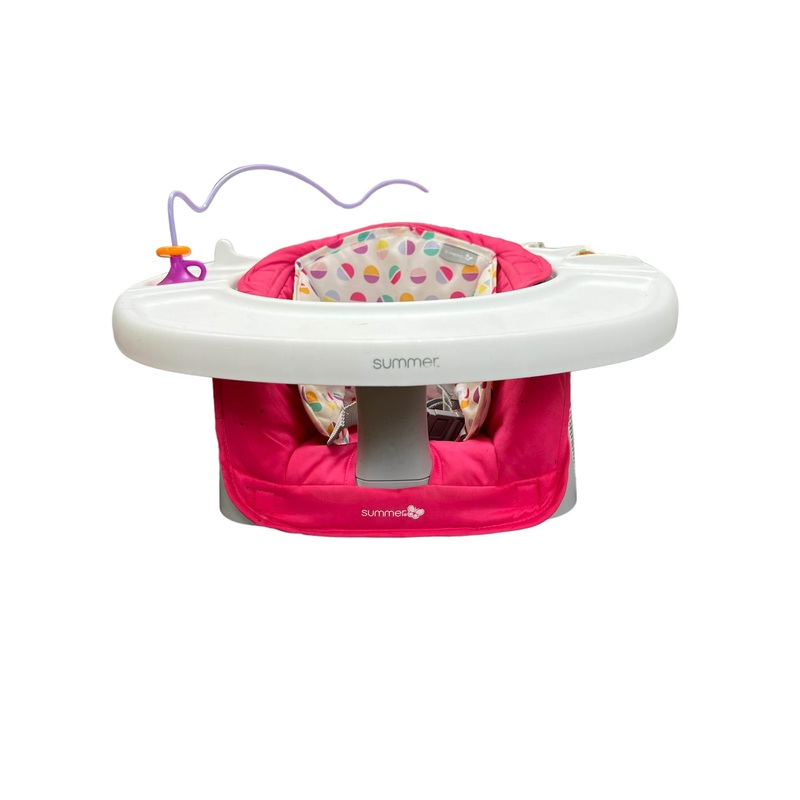 “This seat grows with your child. A stand alone seat positioner with an infant support and soft insert helps your infant learn to sit up. There is also a 360 degree activity seat with rotating tray for play time. The chair can later be transitioned to a feeding seat and booster.”