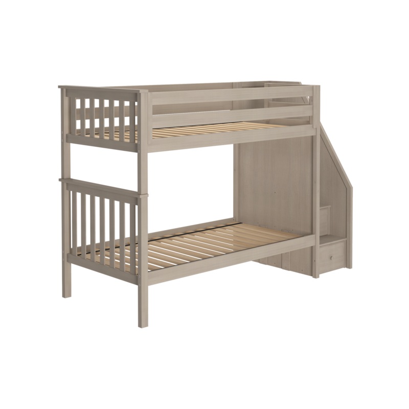 Introducing the “Sunderland Twin-over-Twin Bunk Bed with Staircase,” a perfect blend of functionality, safety, and style for any child’s bedroom. This intelligently designed bunk bed is crafted from high-quality solid hardwood, ensuring durability and a robust structure capable of withstanding active use.