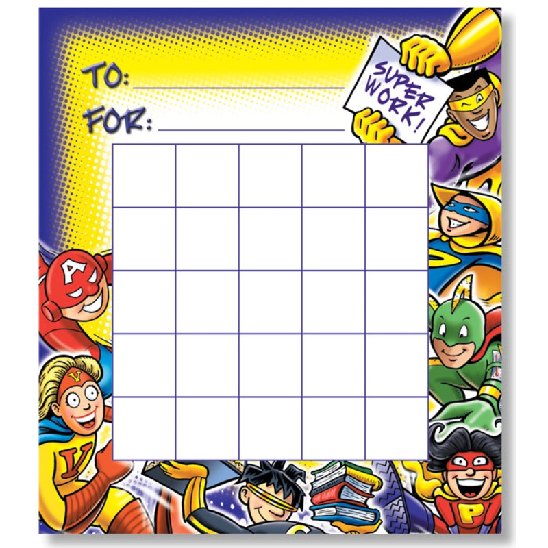 Students will find goal-tracking on these colorful charts very rewarding! Ideal for homework assignments, recording progress, rewarding accomplishments, or motivating good behavior. Each chart has ample space for students name, charts purpose, and 25 of your favorite stickers, stamps or hand-written notes. Awards may be given when charts are filled. 51/4 x 6 (13.3 x 15.2 cm). 36 per package.