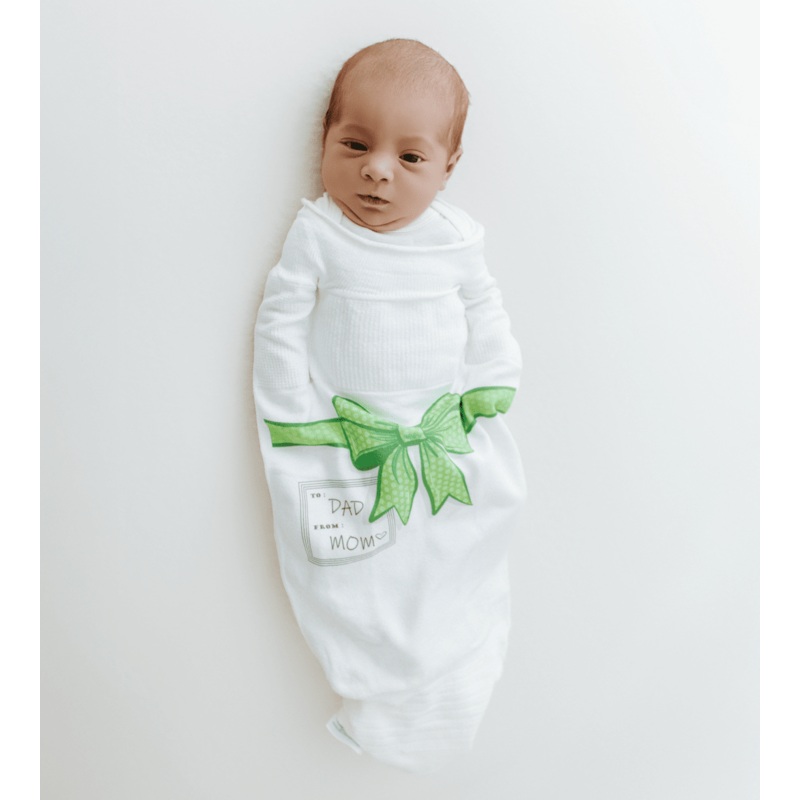 If you are about to give birth and you would like to remind your significant other of this tremendous gift you have given them- wrap your baby in The Gift swaddelini that says “To Dad, From Mom”.