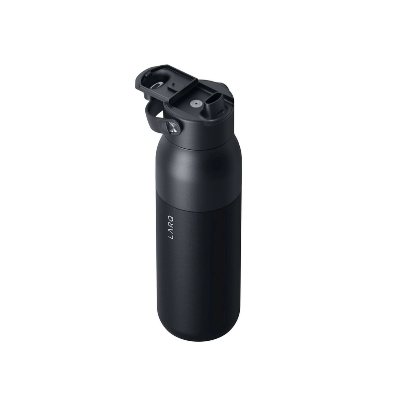 The double-wall stainless steel insulation keeps drinks cold for up to 24hrs load up with ice through the wide mouth opening. The cap is designed to be leak-proof. A free filter straw that improves taste and removes PFOS/PFOA and chlorine is included. The filter lasts for 25 gallons, or 2 months, and can easily be removed. With its integrated, detachable silicone soft handle the water bottle is perfect for carrying drinks around at home and on the go