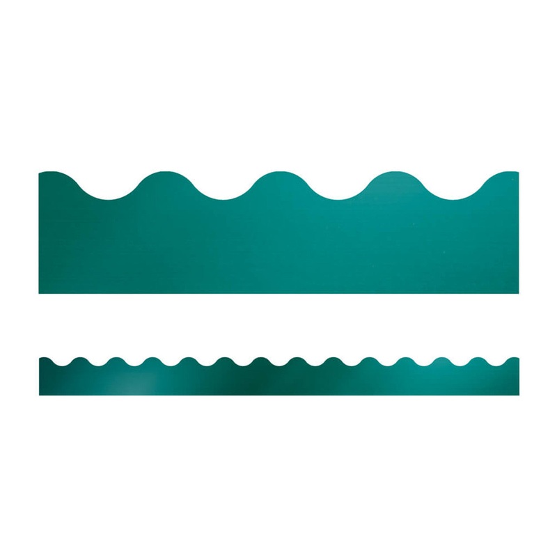 Give your bulletin board displays the perfect finishing touch with eye-catching border trim. This pack of Sparkle + Shine Teal Foil Scalloped Borders includes 13 border strips, each measuring 3′ x 2.25″ for a total length of 39′.