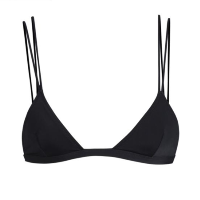 Simple and modern design with double strap and triangular silhouette on the chest. The ideal top to mix and match with the bottoms of your choice.Available in XS, S, M & L in Black