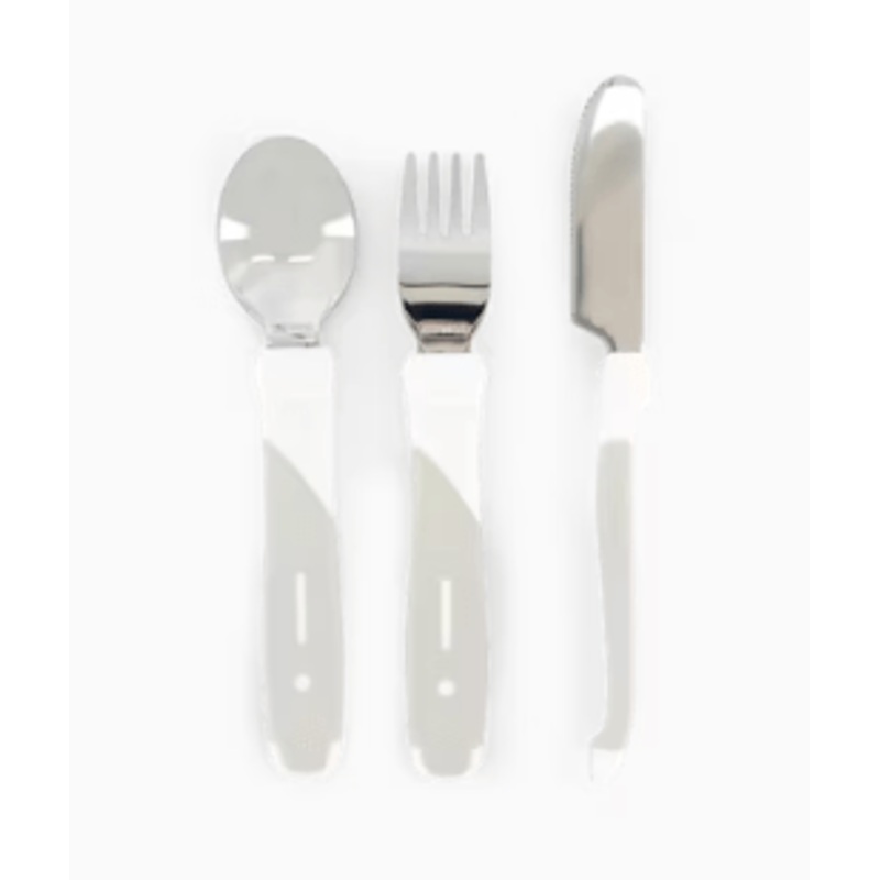 Twistshakes Learn Cutlery set in stainless steel has grip-friendly handles that are comfortable to hold. This set includes a fork, knife, and spoon and is perfect for slightly older kids who are learning or already able to eat on their own. The length of the cutlery is designed to facilitate mealtimes and ensure that the food reaches all the way from the plate to the mouth with less spillage.