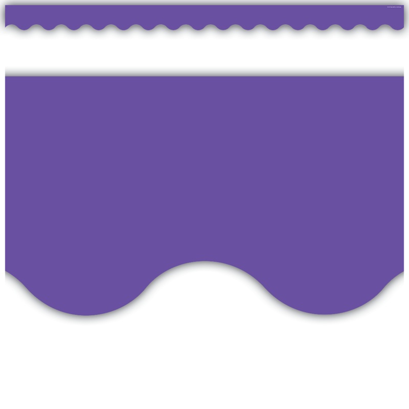 Use this Ultra Purple Scalloped Border Trim to liven up your classroom! Create fresh looks for bulletin boards, windows, walls, and class projects. Mix and match with coordinating products (stickers, notepads, awards, etc.) for a classroom theme. Each pack has 12 pieces (2316” x 35”) for a total length of 35 feet of trim!