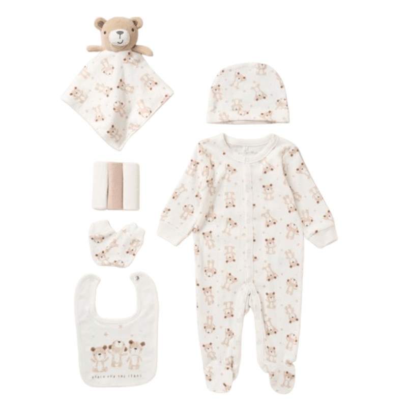 Wrap your little one in cozy comfort with our Unisex Baby 8 Piece Layette Set, featuring an adorable “Teddy” design in soft cream and biscuit tones. Perfect for newborns, this thoughtfully curated set includes all the essentials for your baby’s first days, blending practicality with a timeless, neutral style.