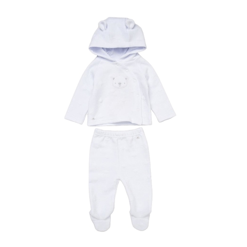 • Hooded Jacket with playful bear ear details and a sweet embroidered bear face, featuring easy snap-button closures for fuss-free dressing.