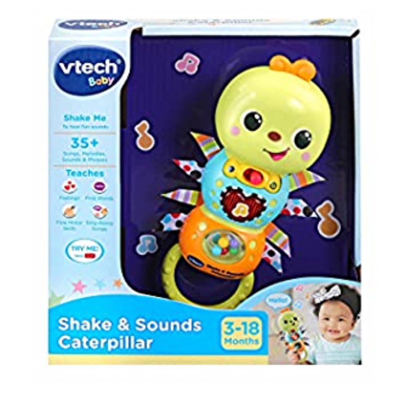The caterpillar’s motion sensor responds with sounds when its shaken.