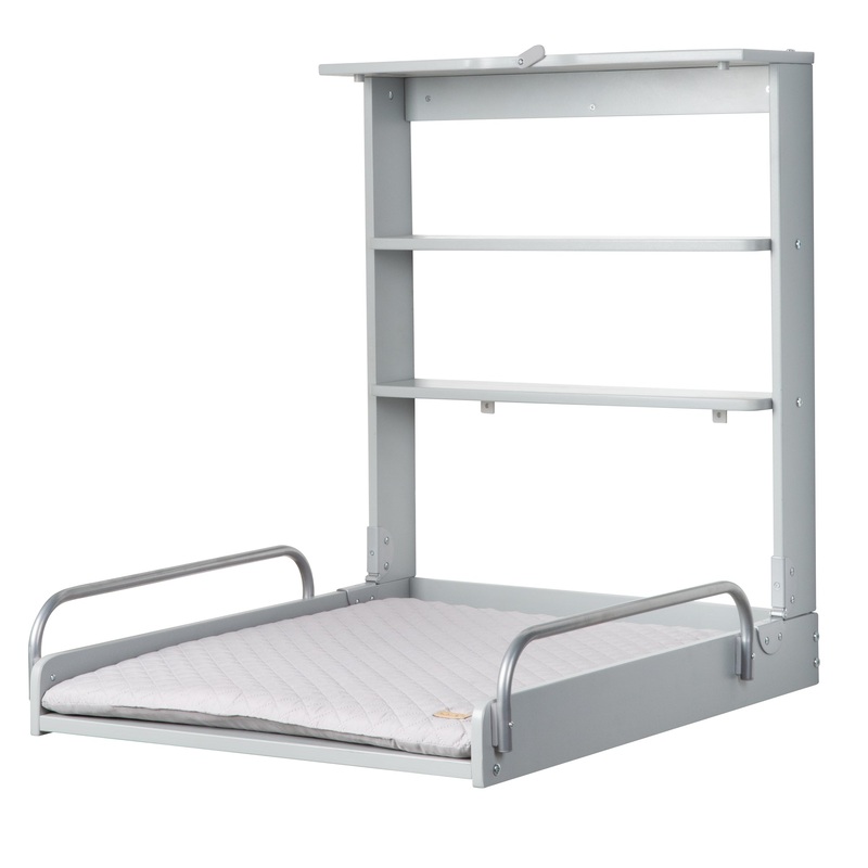 Modernes Design:roba Wandwickelregal aus taupelackiert + Wickelauflage imtrendigen’roba Style grau’ Design – 2 praktische Ablageflche -Flexibel klappbar – Platzsparende Wickellsung im Baby- & Kinderzimmer.