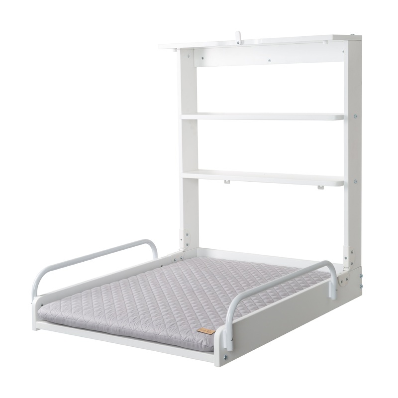 Die Wickelplatte lsst sich aufgrund der Stodmpfer sicher ffnen und leicht dmpfen. Dank seitlicher Schutzbgel ist das Wickelregal von Geburt an bis zu einem Gewicht von 15 kg ein sicherer Wickelplatz.
