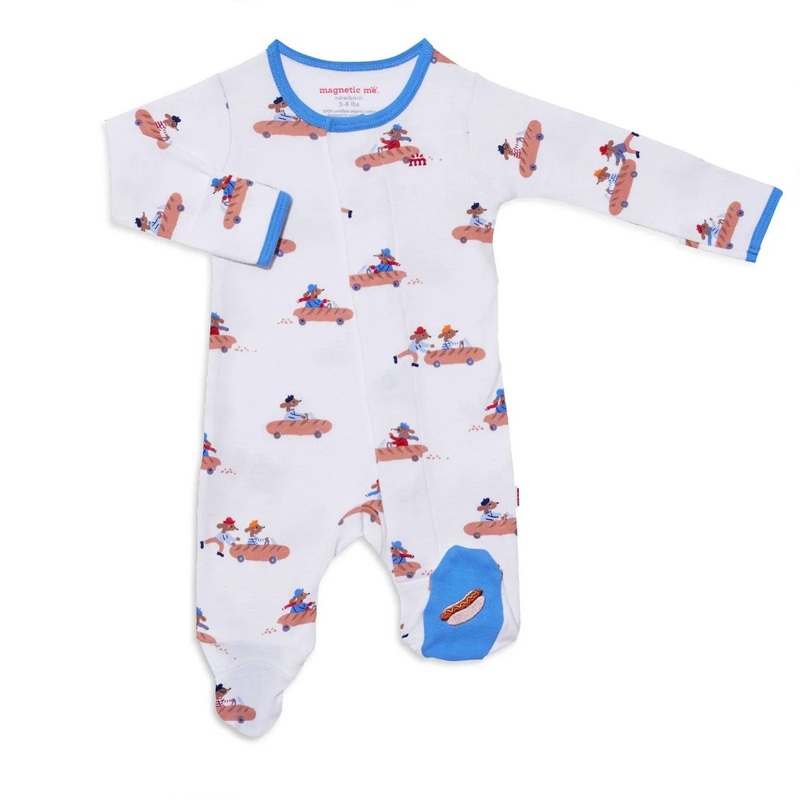 A soft, stylish all-day and all-night wardrobe staple with smart magnetic fasteners that makes changing time easy as 1, 2, 3. With our no over-the-head design, simply open the outfit, insert baby, and BOOM, DONE! - the footie practically closes itself. Mac
