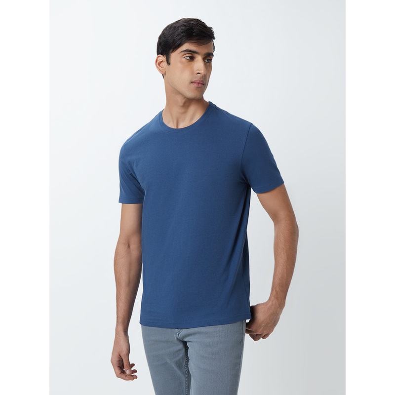 WES Casuals Blue Eco-Save Cotton Slim-Fit T-Shirt