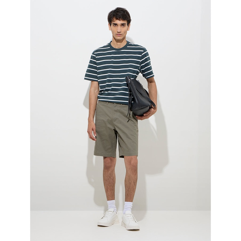 Milled from a cotton-rich fabric, this dark green t-shirt from WES Casuals features classic striped patterns for a timeless touch. Designed in a relaxed fit for easy movement, it is finished with a crew neck and half sleeves, making it a versatile everyday staple.