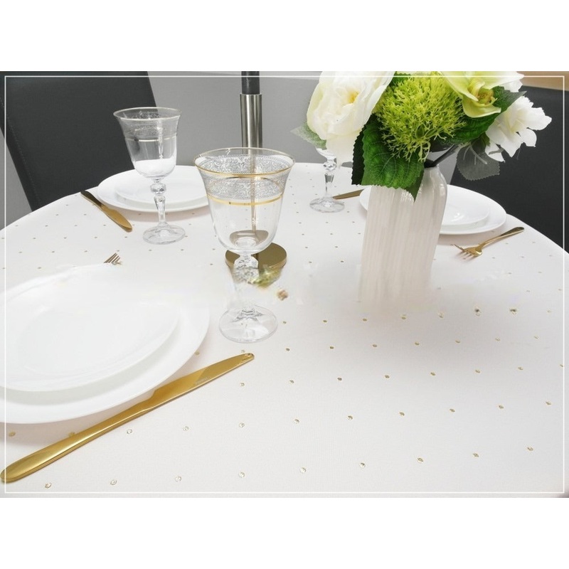White Round Double Sided Table Cloth with Golden Dots Pattern 51.18 in | Marion-130-RoGol