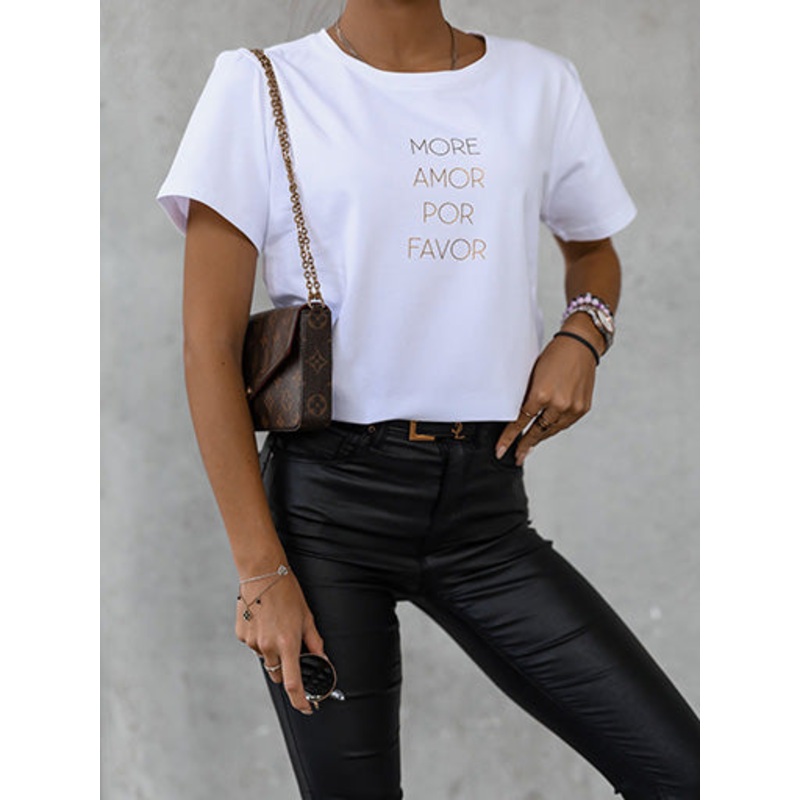 White T-Shirt with More Amor Por Favor Print | FL-21