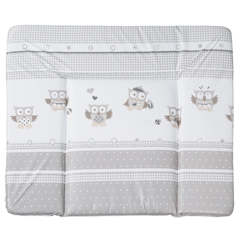 Wickelauflage ‘Eulenbabys grau’, 85 x 75 cm, aus phthalatfreier Folie, weich gepolstert