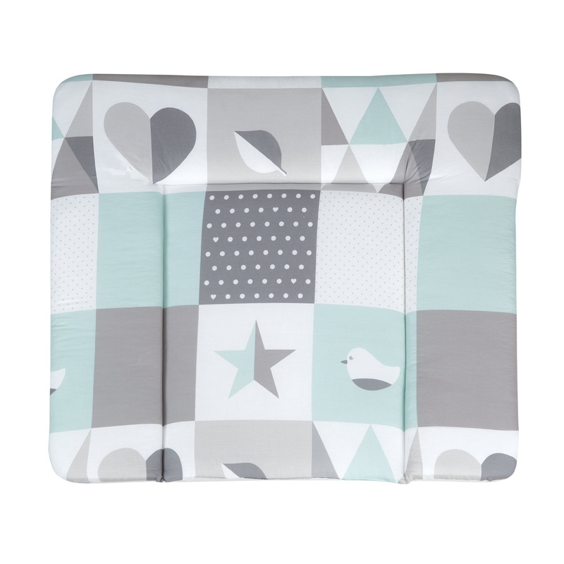 Die Wickelauflage ‘Happy Patch mint’ sorgt mit 3-seitig erhhten Rand fr Geborgenheit beim Wickeln. Die Oberflche der Wickelunterlage ist abwischbar und pflegeleicht.