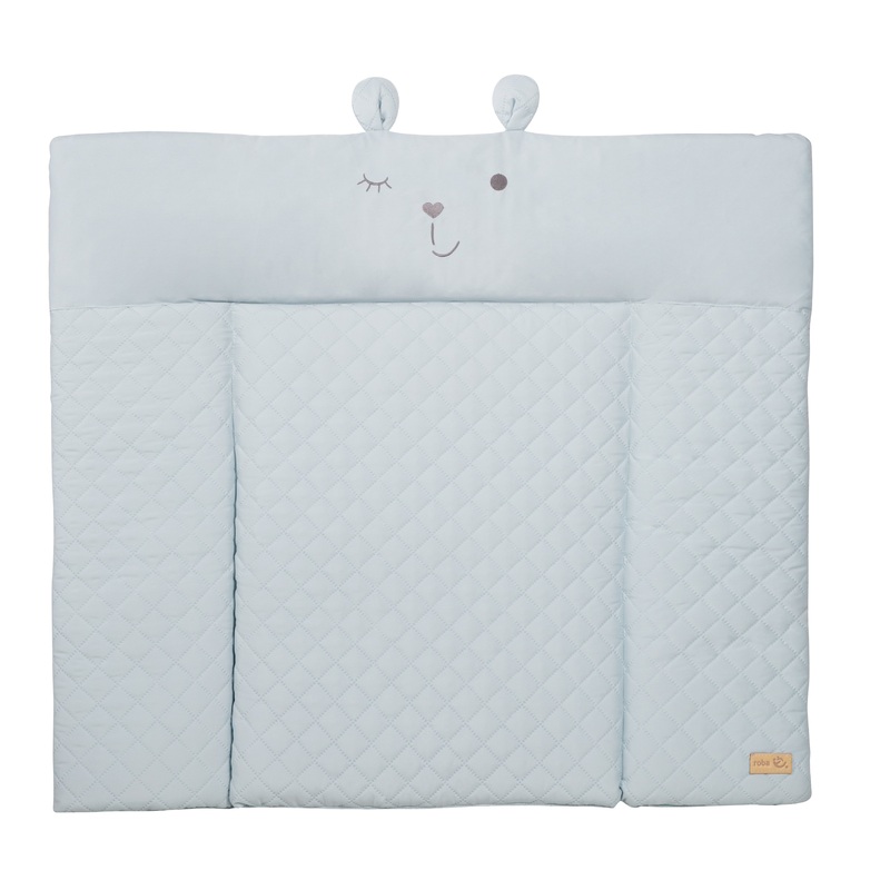Die roba Wickelauflage soft im modernen ‘roba style’-Design mit ihrem niedlichen Brengesicht Benny und zwei Hasenohren als Hingucker sorgt mit ihrem 3-seitig erhhten Rand fr mehr Sicherheit und Geborgenheit beim Wickeln und Pflegen. Die Wickelunterlage ist weich gepolstert, damit Ihr Baby bequem liegt. Der Oberflchenstoff der Wickeltischauflage mit wasser- und schmutzabweisend beschichteter Oberseite ist besonders hautfreundlich und anschmiegsam. Die hochwertige, moderne roba style Serie bietet Produkte fr Babys, die mit Textilien aus pflegeleichter, gesteppter Mikrofaser ausgestattet sind. ‘roba style’-Produkte berzeugen durch ihre trendige Optik, die sich in jedes Wohn- und Babyzimmer integriert und ihre angenehm weiche Haptik. Entdecken Sie praktische Baby-Artikel aus der ‘roba style’ Serie wie z. B. Babylounges, Laufgittereinlagen, Treppenhochsthle, Baby Pools und vieles mehr. Alle verwendeten Materialien der phthalatfreien Wickeltischauflage sind schadstoffgeprft, zertifiziert und werden regelmig geprft. Die Oberflche der Wickeltischauflage ist abwischbar und pflegeleicht. Die Mae der roba Wickelauflage 85 x 75 cm sind an die meisten “Standardwickelkommoden” angepasst. Fllung: 100 % Polyester, Farbe: Oberseite Hellblau, Rckseite: Wei, Design ‘Benny’.