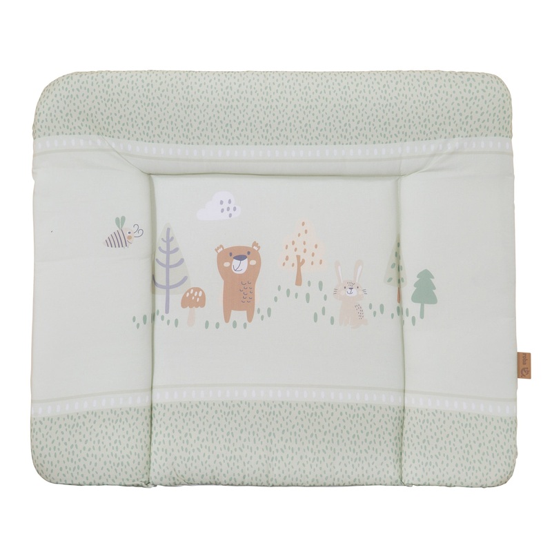 Entdecken Sie die liebevoll gestaltete Wickelauflage 85×75 cm von roba im zauberhaften “Woodland Buddies”-Design ideal fr sicheres, hygienisches und komfortables Wickeln in den ersten Monaten mit Ihrem Baby. Die Wickelauflage ist weich gepolstert und besitzt einen 3-seitig erhhten Rand, der optimalen Schutz bietet und das Herunterrollen Ihres Babys verhindert. Das sanfte Pastellgrn mit liebevoll gestalteten Motiven von Br, Hase, Biene und Waldlandschaft schafft eine beruhigende Atmosphre und passt sich harmonisch an jedes Babyzimmer an. Die Oberflche aus einem hautfreundlichen Mischgewebe (35% Baumwolle, 65% Polyester) ist angenehm zur Babyhaut, pflegeleicht und einfach mit einem feuchten Tuch abwischbar. Die Fllung besteht aus weichem Polyestervlies, das fr angenehmen Liegekomfort sorgt. Dank ihrer Mae von 85 x 75 cm passt die Auflage auf alle gngigen Wickelkommoden ein praktischer Begleiter fr den Alltag mit Neugeborenen und Babys bis ca. 12 Monate.