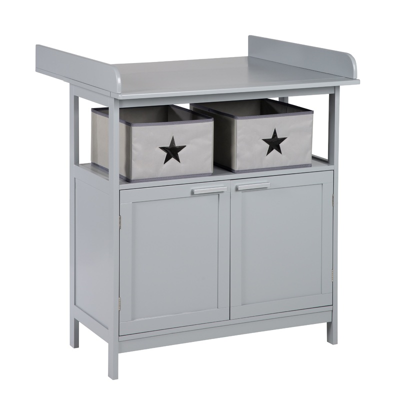 In den zwei Canvasboxen im offenen Fach zwischen der Wickelflche und den 2 Tren der Wickelkommode in hochwertiger Rahmenoptik haben Sie bei der Babypflege alles schnell griffbereit.