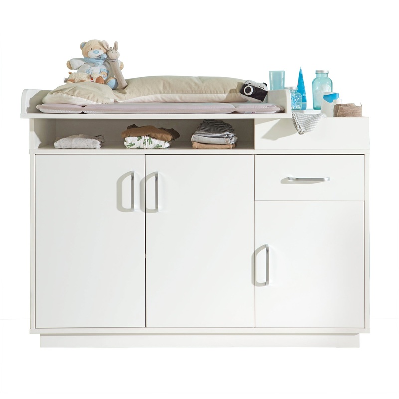 Aufgrund des offenen Fachs ber den beiden Tren und dem Organisationsfach neben dem Wickelansatz ist bei der Babypflege alles griffbereit und gut verstaut.