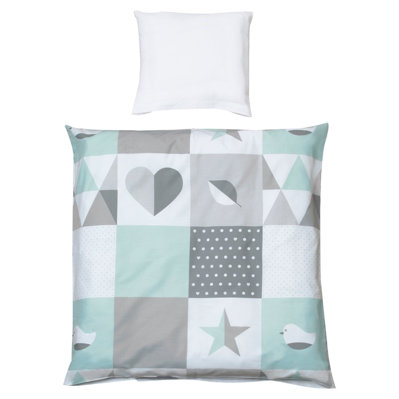 Wiegenbettwsche ‘Happy Patch mint’, 2-tlg Wiegenset, Babybettwsche 80 x 80 cm, 100 % Baumwolle