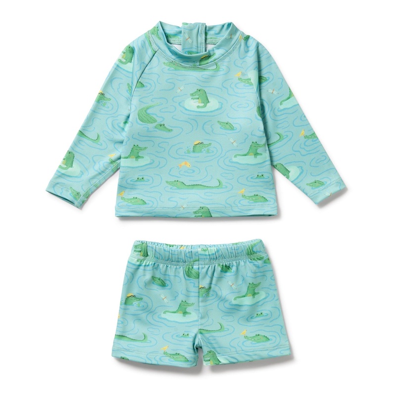 Let your little one enjoy the sun with our two-piece swimsuit! Made from recycled polyester, our swimwear protects from harmful rays with a UPF 50+ rating. With a long sleeve rashie top and adjustable waist shorts, they’ll be comfortable and stylish at the pool or beach. Zipper opening on the back for easy dressing.