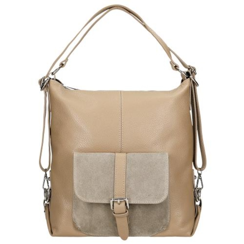 Woajs 2 in 1 Beige Leather Shoulder Bag and Backpack | 80021-74