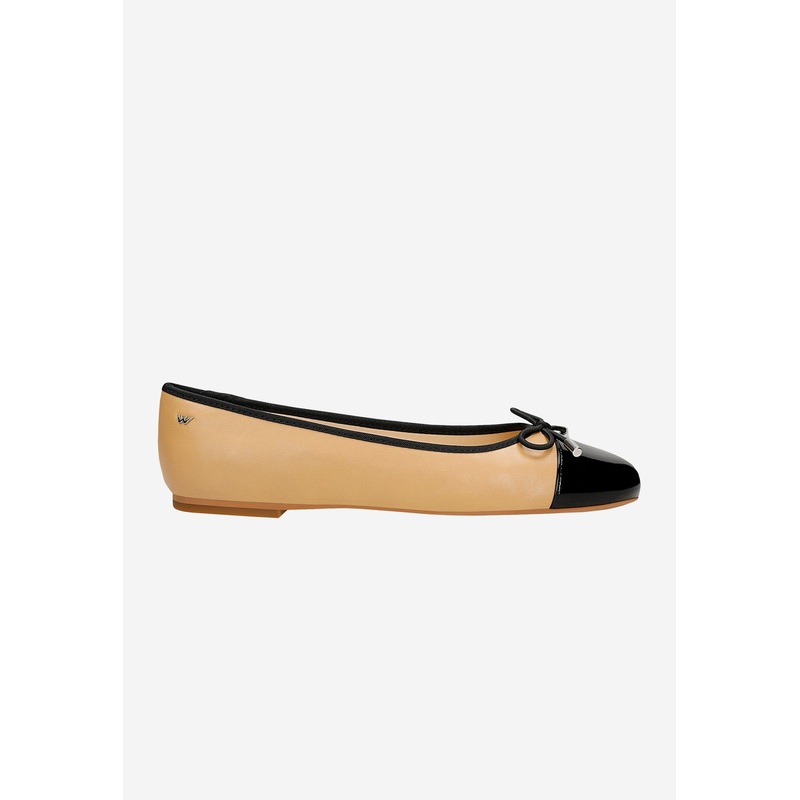 Wojas Beige and Black Leather Ballet Flats with Decorative Bow | 4403574