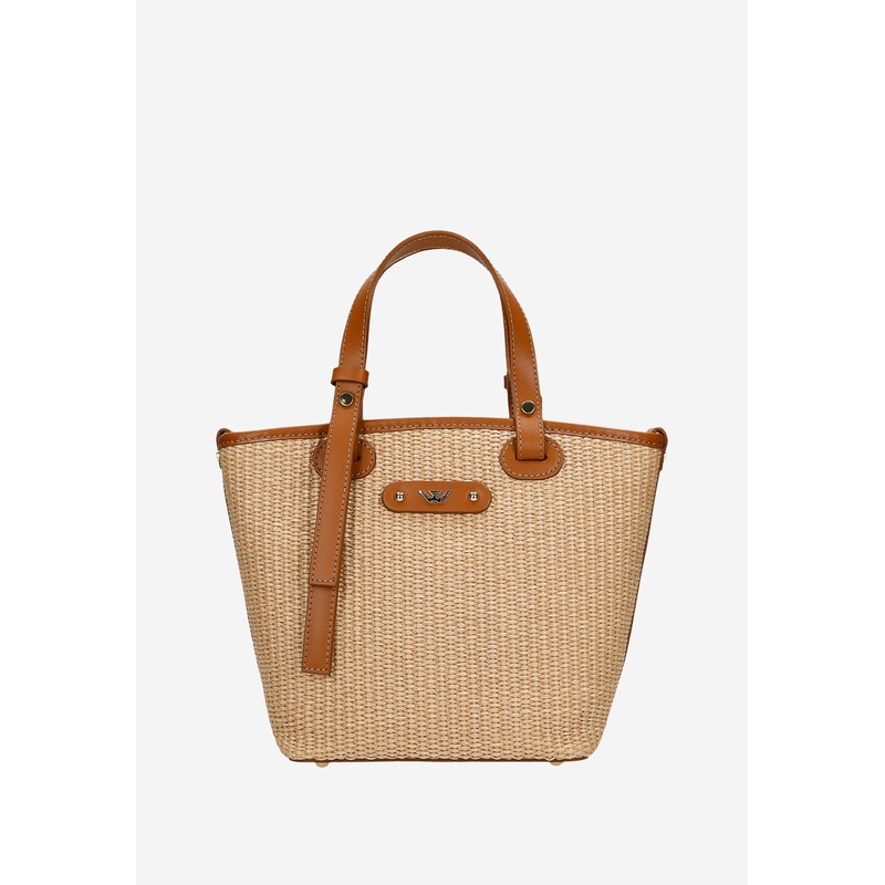 HXS65230683734Wojas Beige Leather and Raffia Tote Bag | 8033983