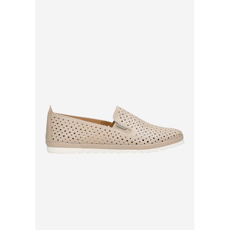 Beautiful beige openwork loafers made of high quality natural leather. These shoes have been designed in accordance with the latest fashion trends, which makes them an essential element of every woman’s wardrobe. The product is also very comfortable and durable.