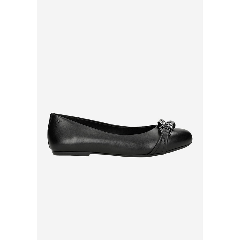 These black ballet flats with decorative chain made of high-quality natural leather are characterized by elegance and casual style. These shoes have been designed in accordance with the latest fashion trends, which makes them an essential element of every woman’s wardrobe.