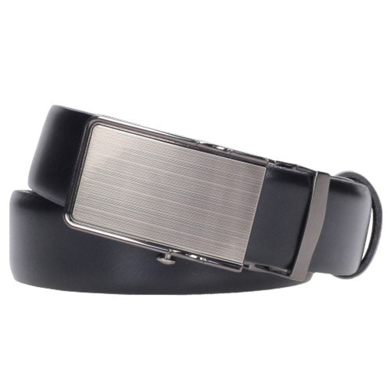 Men's Leather BeltCrisp and cool, this sleek leather belt elevates your wardrobe. Wear it with jeans or dress pants any day of the week. This product is made of high-quality top grain leather. It is 3 cm (1.18 in) wide and has a steel, eye-catching plaque