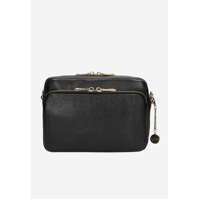 HXS65230683855Wojas Black Leather Crossbody Bag with Golden Details | 8034351