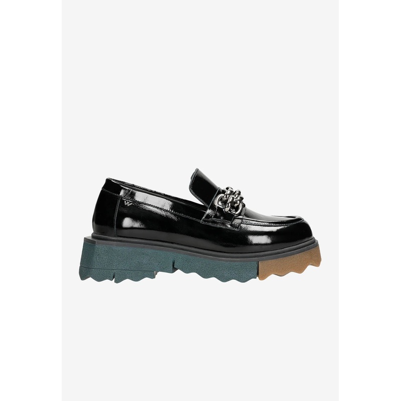 Beautiful black loafers with two-color soles made of high-quality natural leather. These shoes have been designed in accordance with the latest fashion trends, which makes them an essential element of every woman’s wardrobe. The product is also very comfortable and durable.