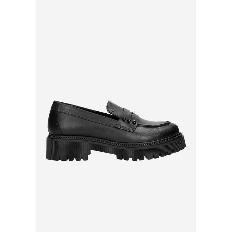 Beautiful black loafers made of high quality natural leather. These shoes have been designed in accordance with the latest fashion trends, which makes them an essential element of every woman’s wardrobe. The product is also very comfortable and durable.