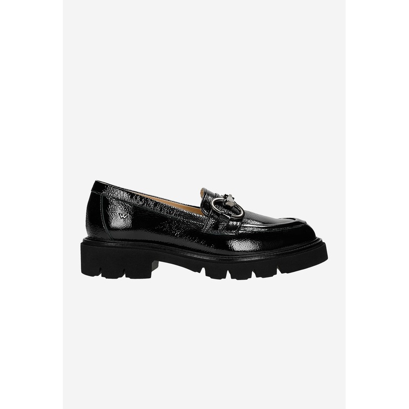 Beautifulblack loafers with decorative chain and a massive sole made of high- quality patent leather. These shoes have been designed in accordance with the latest fashion trends, which makes them an essential element of every woman’s wardrobe. The product is also very comfortable and durable.