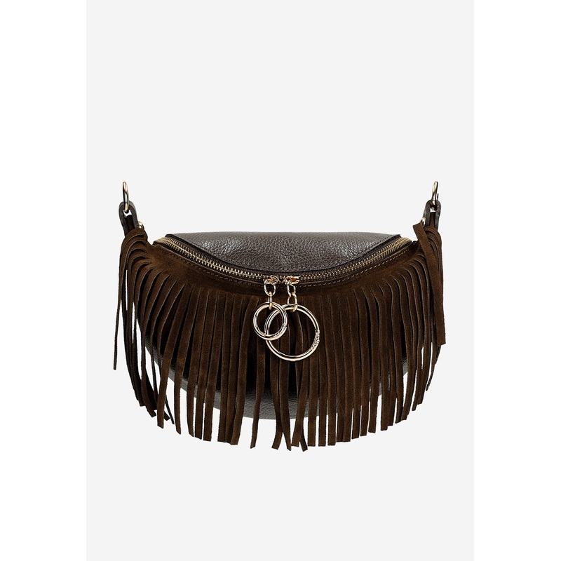 Wojas Brown Leather Crossbody Bag with Fringes | 8008972