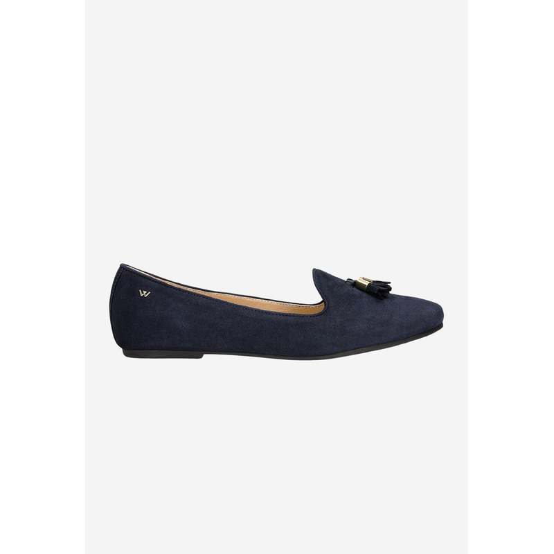Wojas Dark Blue Velour Leather Loafers with Decorative Tassels | 4500167