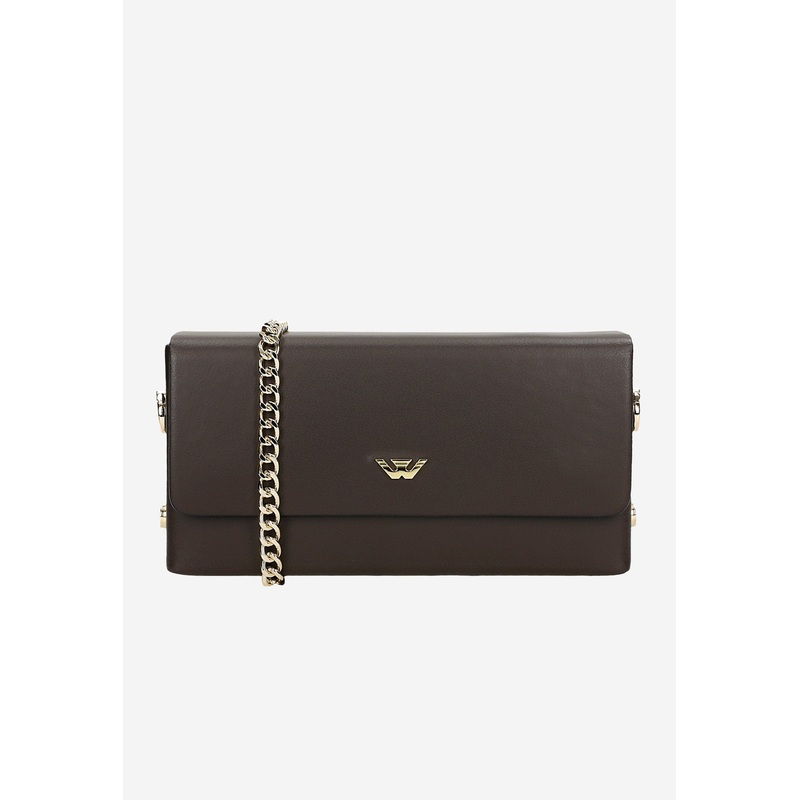 Wojas Dark Brown Leather Crossbody Bag with Golden Logo | 8034152