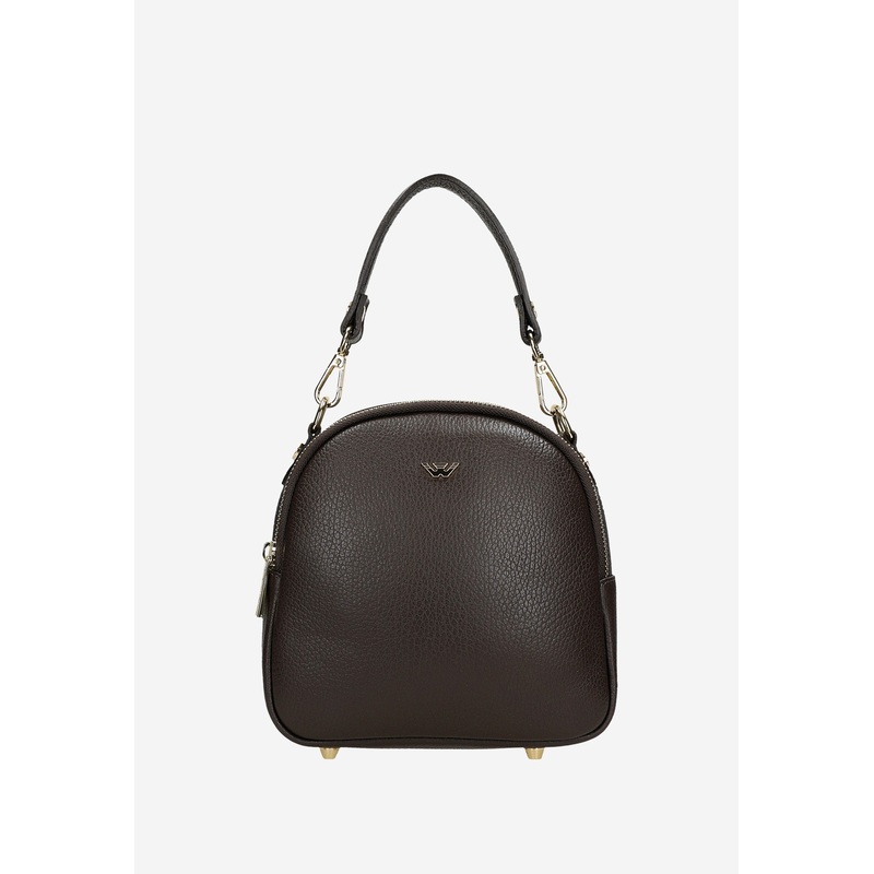 Wojas Dark Brown Leather Crossbody Bag with Golden Logo | 8043152