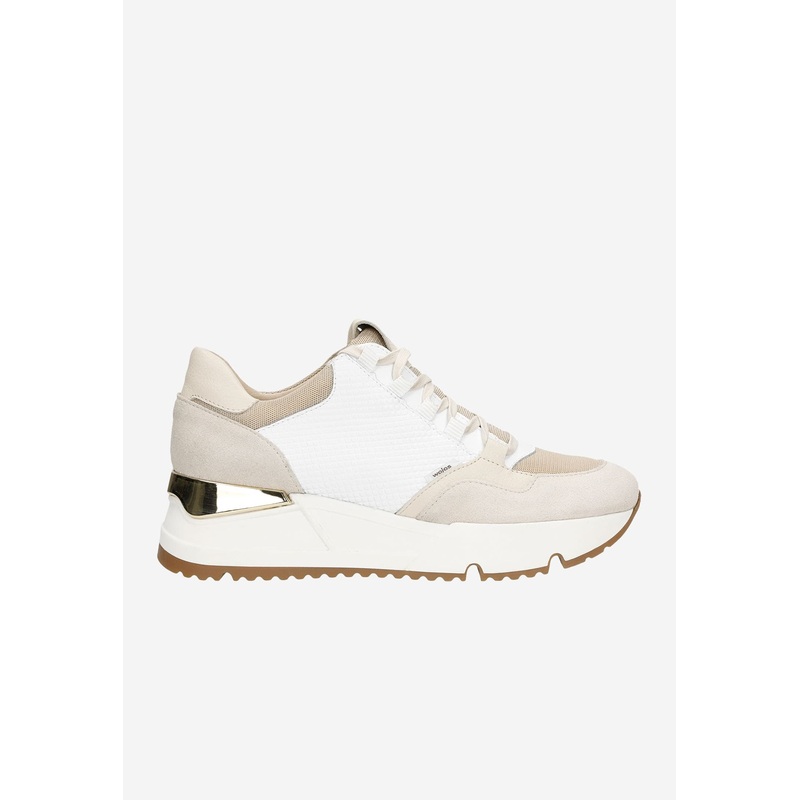 Beautifulbeige and white sneakers with reflective details made of high-quality natural leather. These shoes have been designed in accordance with the latest fashion trends, which makes them an essential element of every woman’s wardrobe. This product is a great choice for women who value comfort.