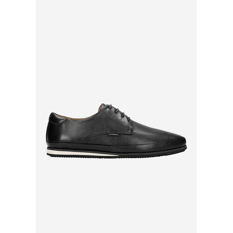Stylish black sneakers made of high-quality leather. These shoes have been designed in accordance with the latest fashion trends, which makes them an essential element of every gentleman’s wardrobe. The product is also very comfortable and durable.
