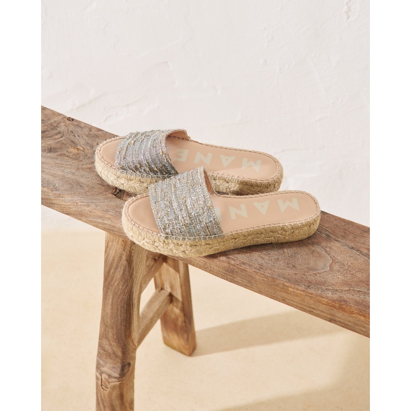 Brighten up your summer wardrobe with these platinum sandals.Featuring a textured woven upper and a jute platform sole, they combine vibrant style with ultimate comfort.The easy slip-on design makes them perfect for warm-weather outings by the pool or stro