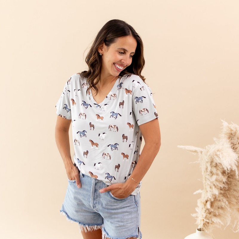 Be the first to review “Womens Relaxed Fit V-Neck in Horse”