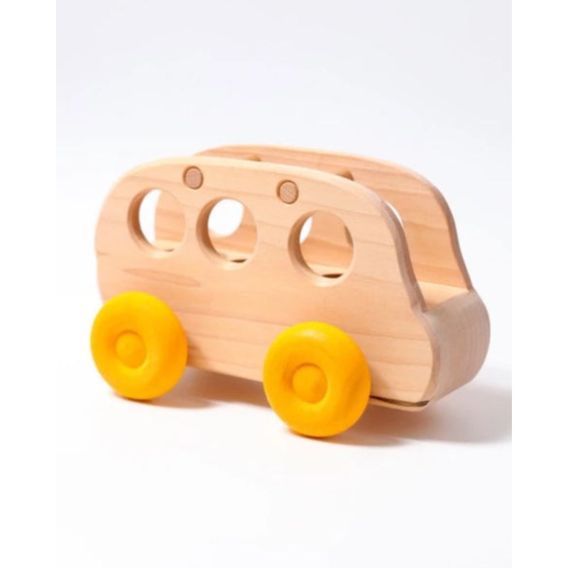This wooden bus can be filled with the Grimm's Rainbow Friends or any small doll and off you go! Designed with small hands in mind, it is easy to grasp and push.solid woodmeasures about 7" long