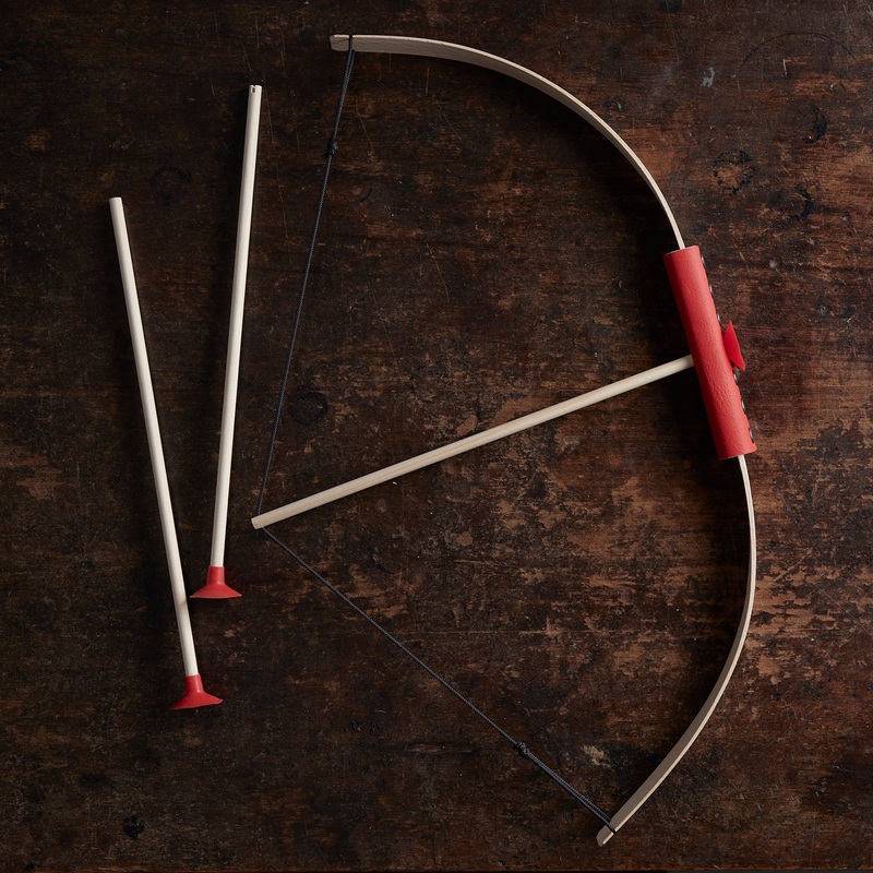 The Mini Bow set is a fantastic and well constructed toy, with a rivetedtaped gripdesigned to look like leather and a hole for guiding arrows. This design makes it easy for small hands to use.It comes with 3 safety arrows with suction tipped safety tips making them perfect to stick on archery targets and even surfaces.