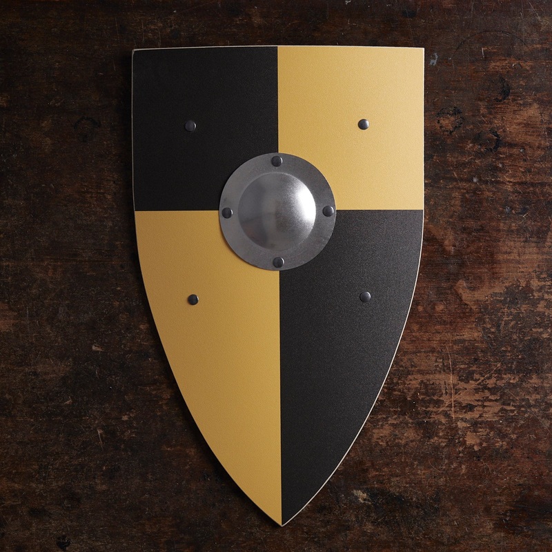 This Norman style shield is a great addition to any child’s play set and is perfect for letting their imagination run free. Comes in a vibrant yellow and black colour designed with a metal boss for added realism and two tethers to fix in place while using.