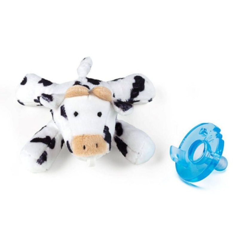 Our shy but lovable Baby Cow is now available in the detachable pacifier design. Baby Cow has a soft, whimsical black and white print fur and little legs that are perfect for tiny hands to hold onto when on the moo-ve!